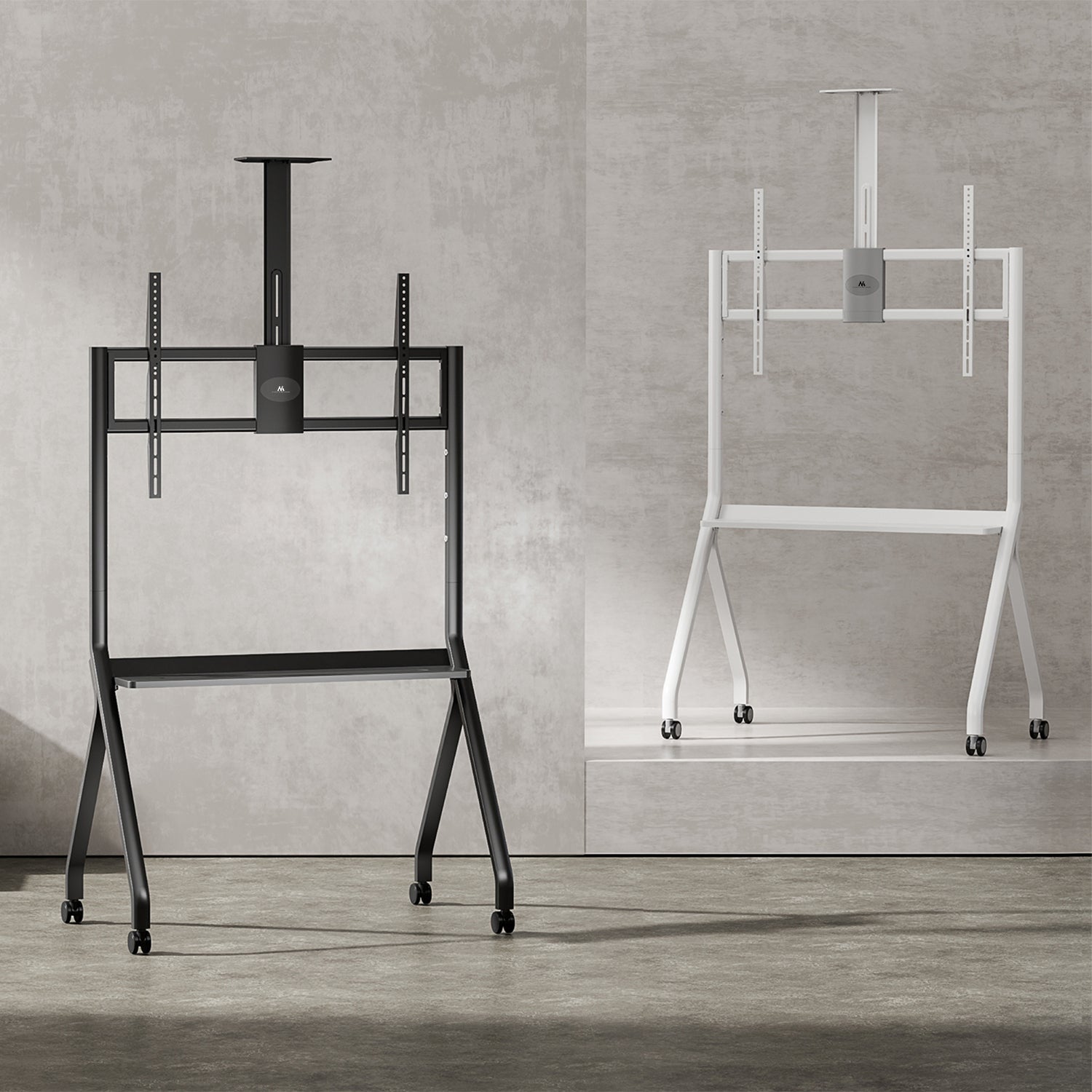 Maclean MC-114 TV stand/cart is a sturdy and functional solution for professional use in offices, conference rooms, schools or event spaces. The structure is made of durable powder-coated steel, ensuring stability and safe use even with large screens. Thanks to the use of casters, the whole thing can be moved easily and safely, allowing flexible space management and quick adaptation of the room layout to current needs.