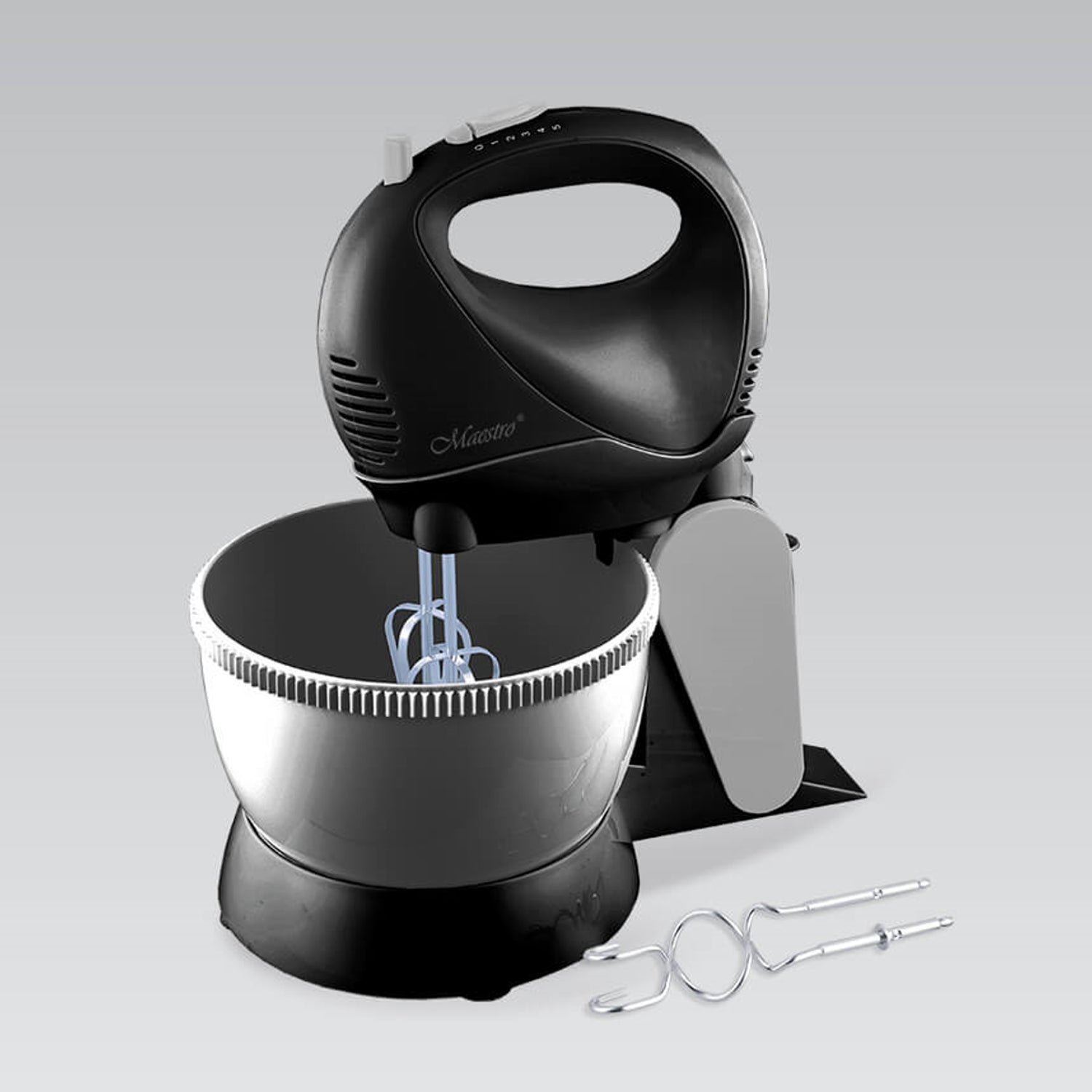 Maestro MR-550 Stand Kitchen Mixer Rotating Bowl 5 Speeds Turbo Mode 600W Black 2 Whisks Kneading Hooks