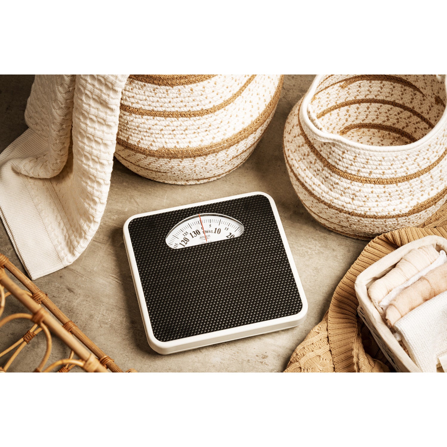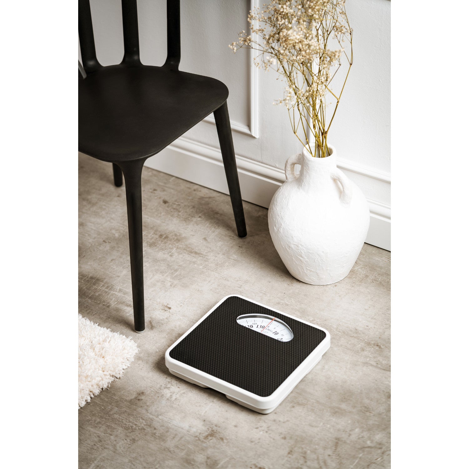 Scála seomra folctha meicniúil clasaiceach. Mura bhfuil muinín agat as taispeántais, mura dtaitníonn siad leat ar chúis éigin nó mura n-oireann siad do do sheomra folctha, roghnaigh an scála meicniúil AD 8179. Ní gá duit é a chasadh air, seasann tú ansin agus léann tú an toradh - agus tá sé an-áisiúil.