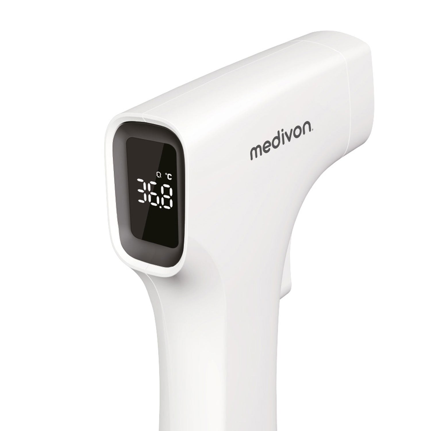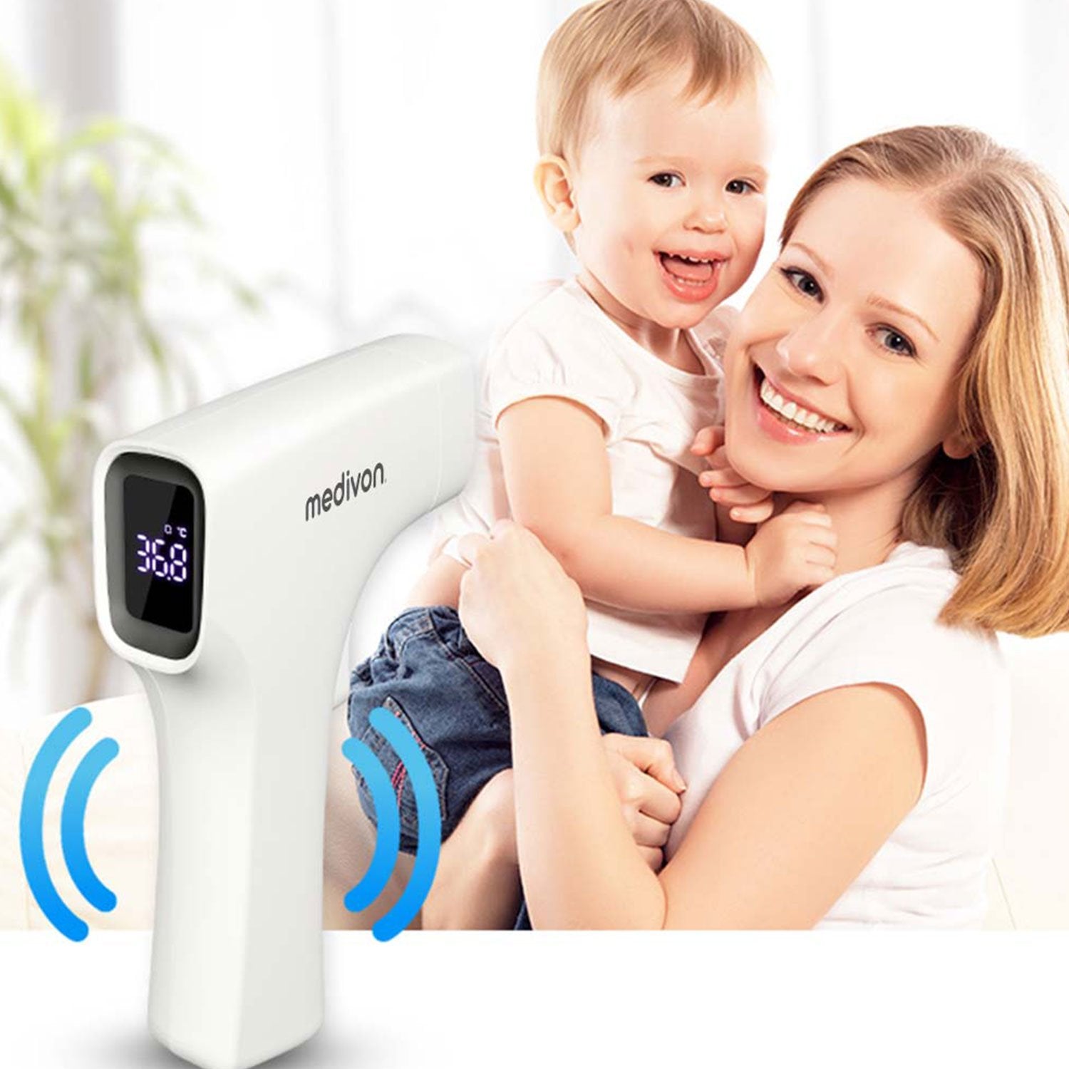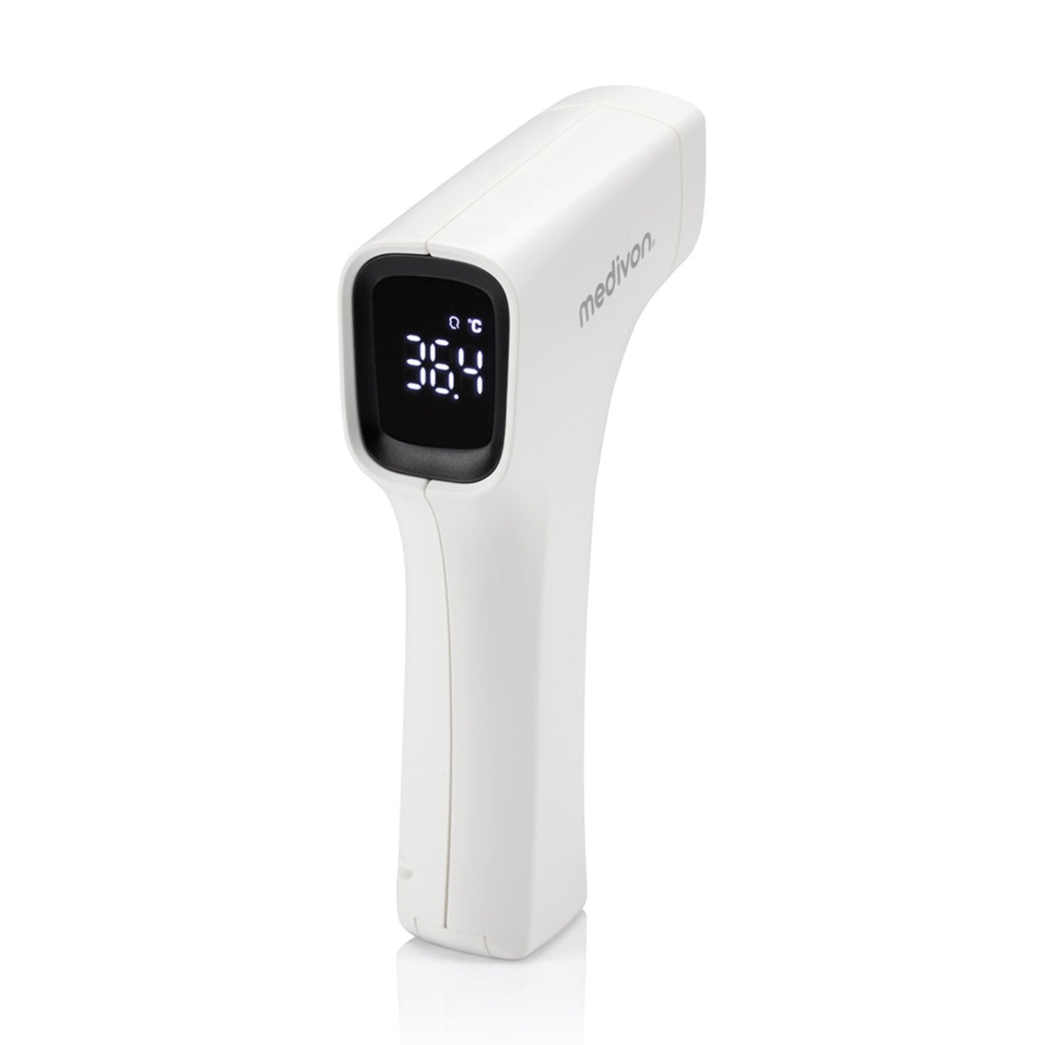 Tá teirmiméadair Medivon bunaithe ar theicneolaíocht infridhearg neamhtheagmhála, rud a chinntíonn tomhas cruinn agus sláinteach. Déantar an tástáil iomlán go ciúin ó achar de roinnt cm. Ní gá calabrú le linn na tréimhse úsáide.