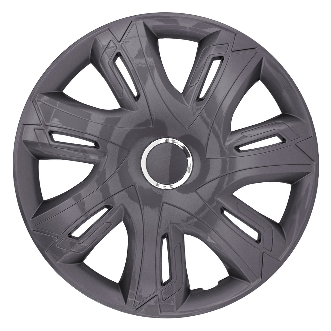 Clúdaigh Rothaí Supernova d'Imeall Cruach Caipíní Mol Tacar de 4 Fheithicil Gluaisteán Gluaisteán atá Oiriúnach don chuid is mó de na brandaí agus na n-imeallaí Graifít Plaisteach ABS, 16"