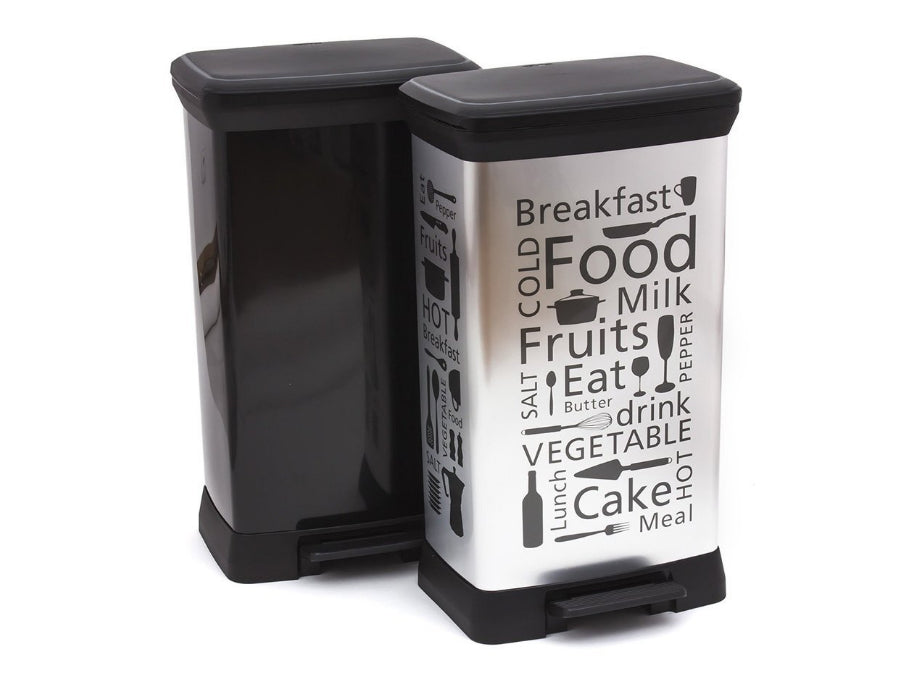 Araid Dramhaíola Curver 50 L le Pedal Dromchla Miotalaithe Oifig Baile Cistine Dustbin Silver Lidded