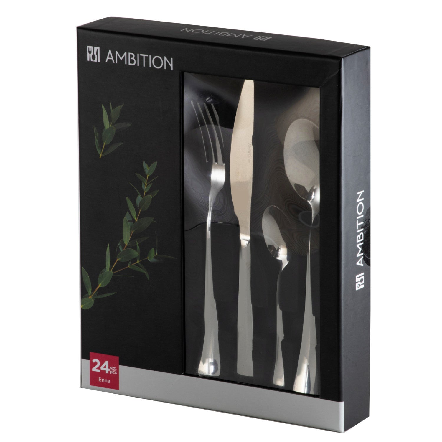 A minimalist 24-piece cutlery set from the Enna series. The shape of the cutlery beautifully complements both modern and classic tableware. The cutlery is made of high-quality hand-polished stainless steel with a mirror finish.