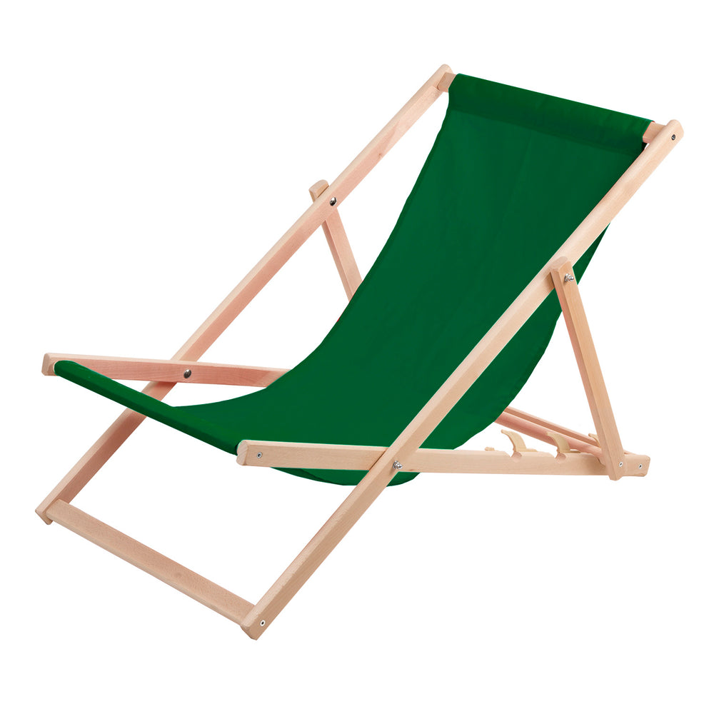 Dhá chathaoir deic adhmaid chompordacha i ndath glas, foirfe le haghaidh scíth a ligean ar an trá, ar an mbalcóin nó ar an ardán.