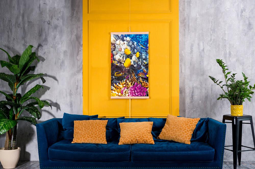 Téitheoir Infridhearg i bhfad i gcéin - Painéal Téimh Solúbtha 430W Dearadh TRIO 6 Rialaitheoir Póstaeir Téimh Maisiúil Sceire Coiréil 100x57cm ar Chorda