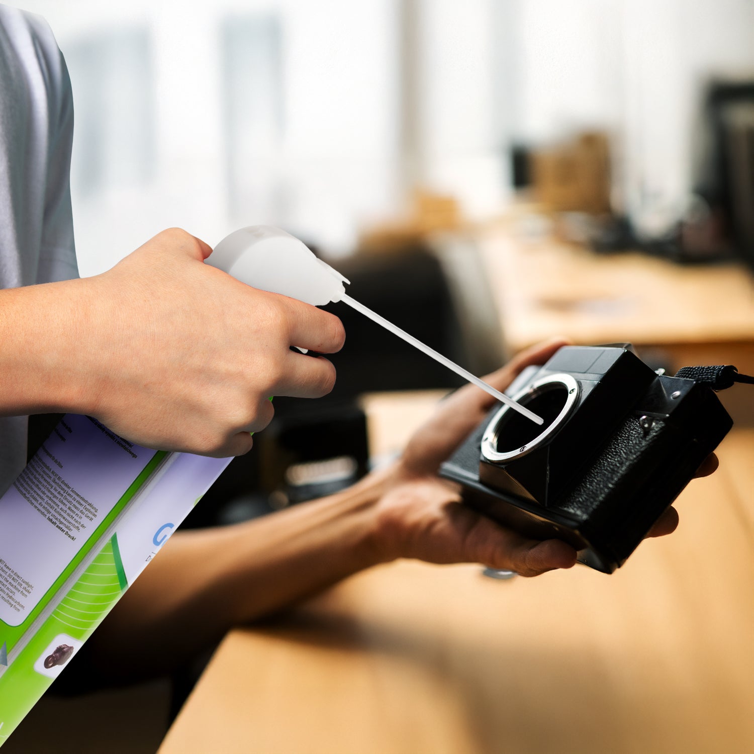 Is táirge fíor-riachtanach é an t-aerasól aeir chomhbhrúite 400 ml chun deannach agus smionagar a bhaint go tapa agus go sábháilte as áiteanna atá deacair a bhaint amach. Ceadaíonn an feadán ribeach atá san áireamh dáileadh beacht aeir, rud a fhágann go bhfuil an táirge oiriúnach chun gléasanna leictreonacha íogaire ar nós méarchláir, ríomhairí glúine, ceamaraí agus taobh istigh ríomhairí a ghlanadh.