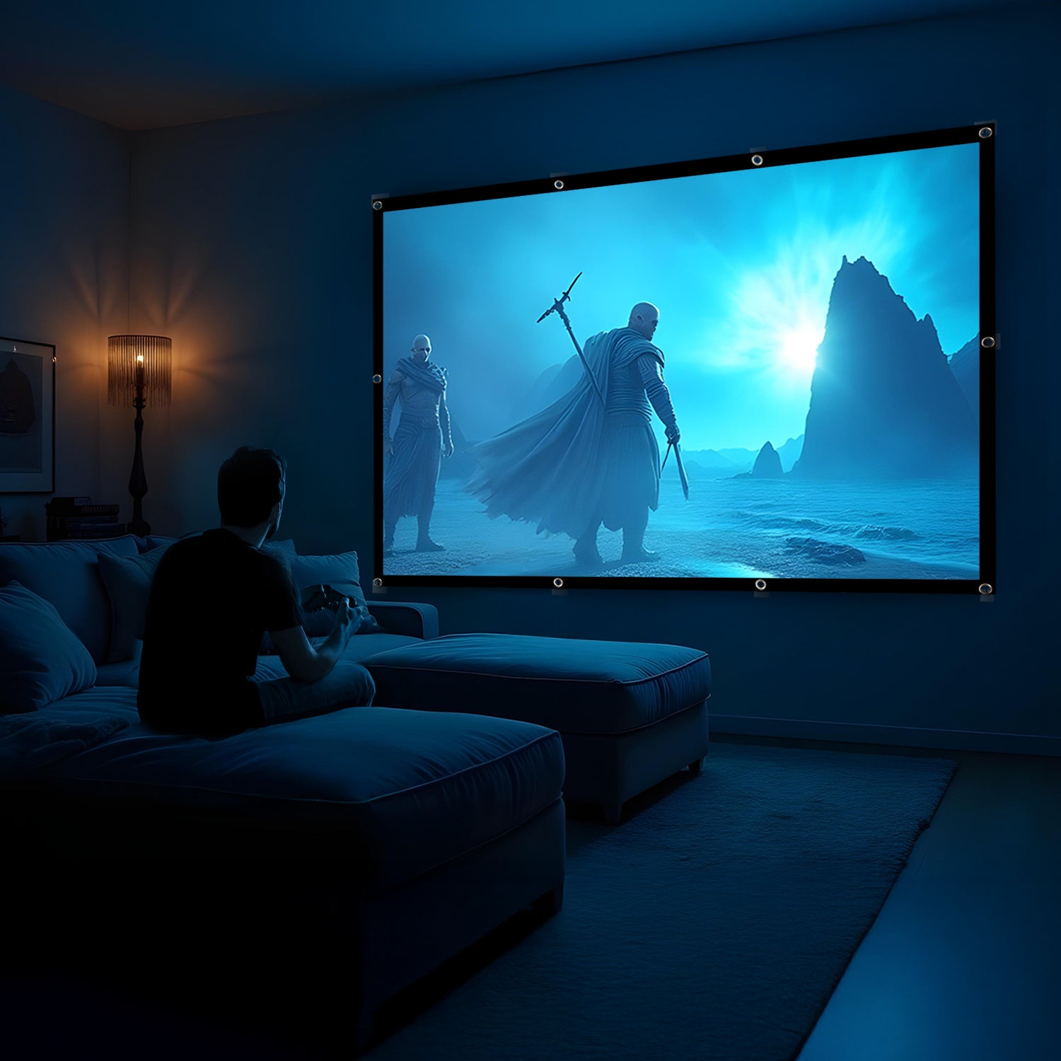Soláthraíonn an tsamhail trasnánach 120 orlach (240x180 cm) íomhá ghéar, chineamatach atá oiriúnach do spásanna níos mó. Is rogha iontach í d’amharclanna baile, seomraí comhdhála, seomraí ranga nó imeachtaí poiblí. Tá an íomhá ag an méid seo an-suntasach - tugann sí deis do lucht féachana a bheith tumtha go hiomlán san ábhar atá á chur i láthair, bíodh sé ina scannán, ina chur i láthair nó ina chraoladh spóirt. ÁBHAR MARTHANACH AGUS LEAISTE - POLAISTEAR ARDCHAIGHDEÁIN