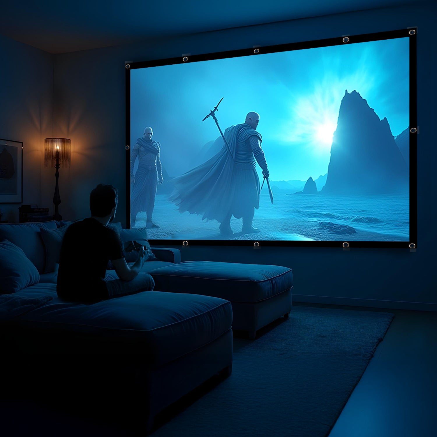 Déanta as ábhar poileistear tiubh, solúbtha, tá marthanacht den scoth agus friotaíocht in aghaidh roic agus dífhoirmithe ag an scáileán MC-168. Cinntíonn an dromchla réidh scaipeadh cothrom solais, rud a fhágann íomhá shoiléir agus ghéar. Is féidir an scáileán a fhilleadh agus a stóráil gan a bheith buartha faoi roic bhuan.