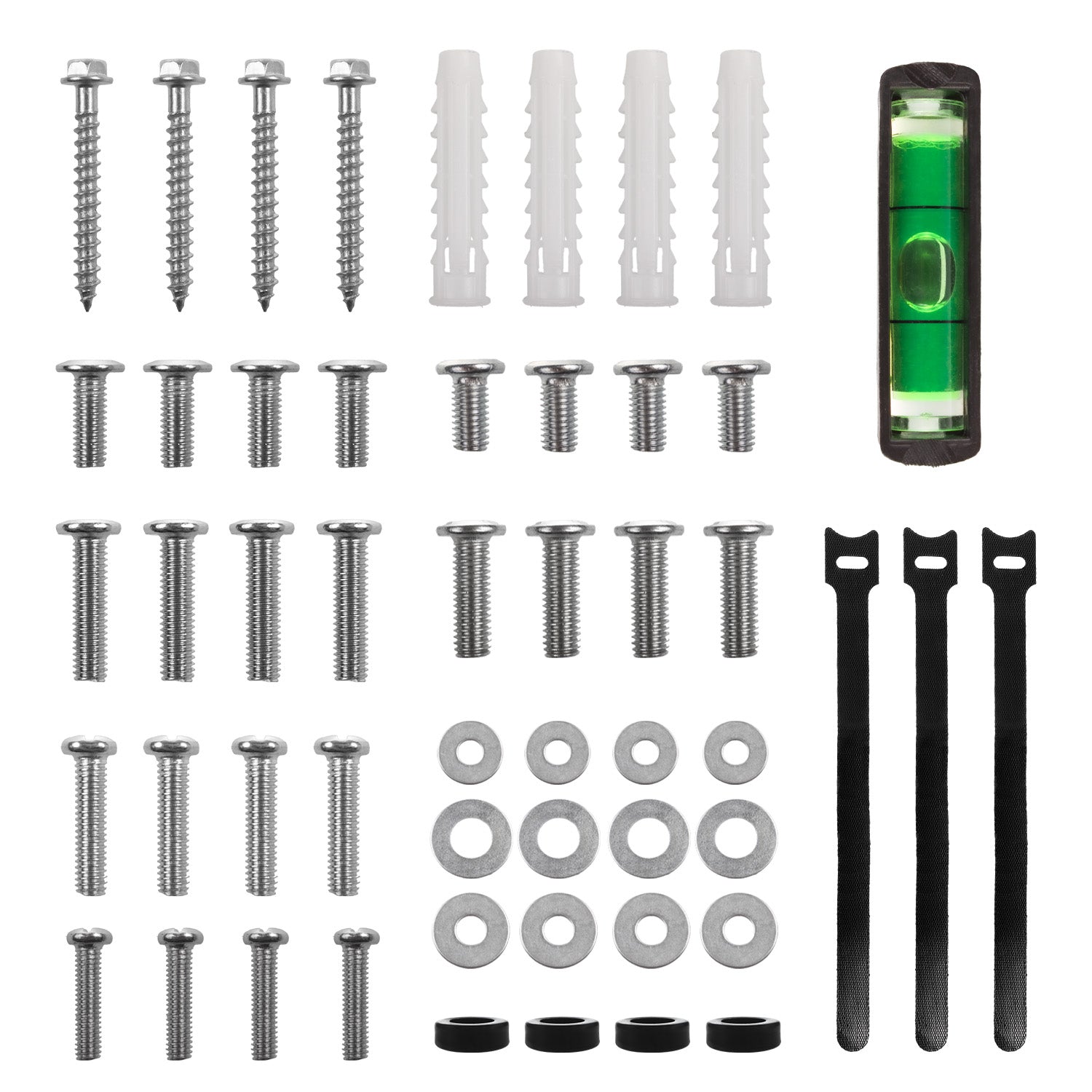 Tagann sraith iomlán scriúnna gléasta leis an ngléas - chun é a cheangal leis an mballa agus chun an teilifís a chur suas go daingean. Tá lámhleabhar treoracha soiléir ag gabháil leis an tsraith iomlán, rud a fhágann gur féidir é a shuiteáil go tapa agus gan stró.