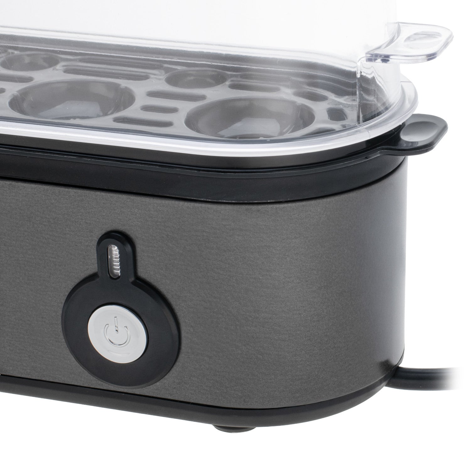 Ag brath ar an méid uisce a dhoirtear, roghnaíonn tú duit féin an bhfuil tú ag iarraidh ubh a chócaráil bog, meánach crua nó crua. Ligeann an cupán tomhais atá le feiceáil go soiléir duit an méid ceart uisce a dhoirteadh go héasca. Go tapa agus gan stró agus tú i do sheasamh ag an sorn, ullmhóimid an bricfeasta foirfe, ach freisin na comhábhair le haghaidh sailéid nó greamaigh. Ina theannta sin, le linn an phróisis chócaireachta, cuireann solas táscaire in iúl dúinn go bhfuil an gléas ag obair. Nuair a ghalaíonn an t-uisce, cloistear fuaim agus múchann an solas táscaire - múchtar an gléas go huathoibríoch.