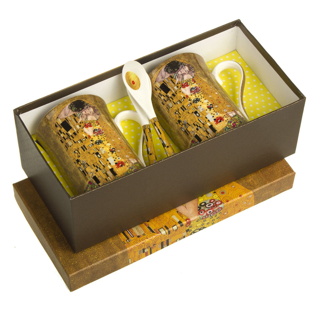 Set of 2 porcelain Queen Isabell cups, Klimt's Kiss motif, teaspoons, 250ml, W25KL60-2-19000