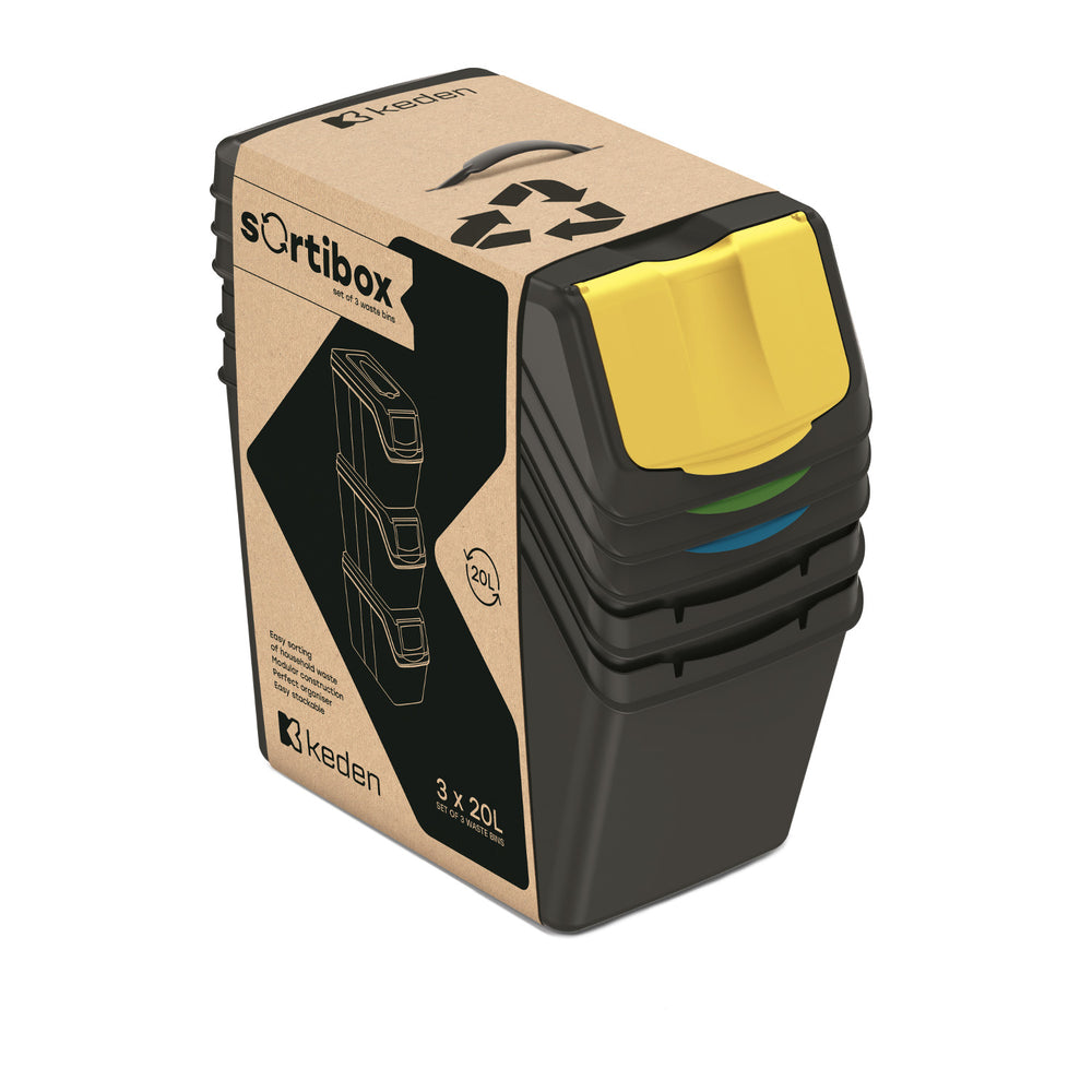 Keden SORTI BOX Sórtáil Araidí Dramhaíola Socraigh Bruscar Can 3 x 20L Athchúrsáil