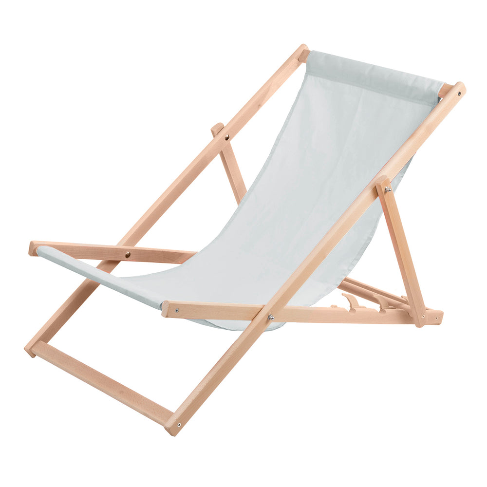 Leaba tolg adhmaid feá Woodok, liath, oiriúnach don trá, do bhalcóin, d'ardán