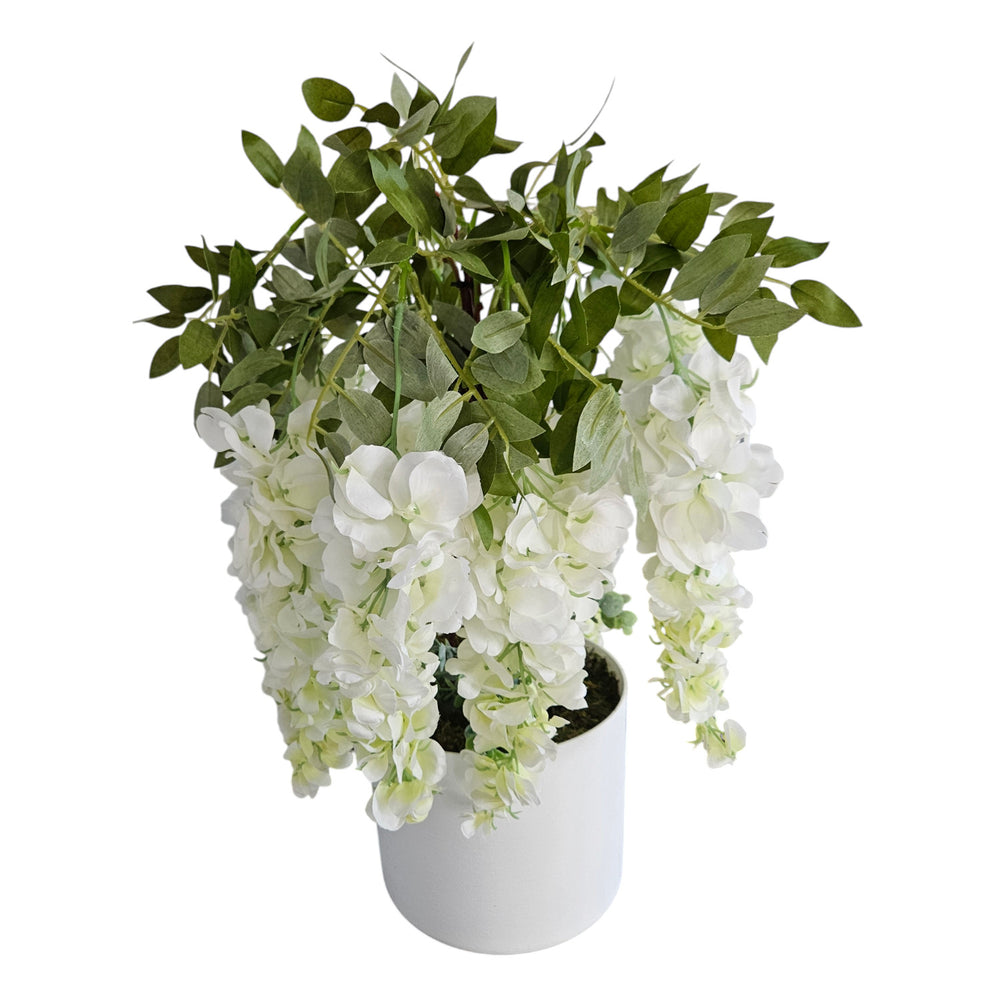Magairlín Saorga Damich i bplanda pota bláthanna Maisiú Bláthanna Saorga 3-bhrainsí Airde Thart ar 60cm Bán
