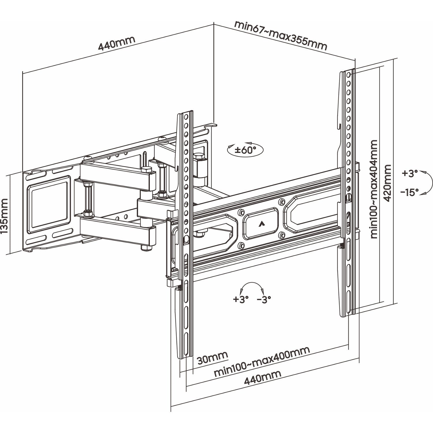Gléas balla uilíoch atá deartha le haghaidh teilifíseáin a shuiteáil le méideanna scáileáin ó 32 go 70 orlach. Tá lámh dhúbailte feistithe ar an ngléas, rud a ráthaíonn cobhsaíocht agus slándáil do theilifíseáin a bhfuil meáchan suas le 40 kg acu. A bhuíochas leis an gcoigeartú ingearach agus cothrománach, faigheann tú smacht iomlán ar an uillinn féachana, rud a ligeann duit an teilifís a choigeartú go barrmhaith do do chuid riachtanas.