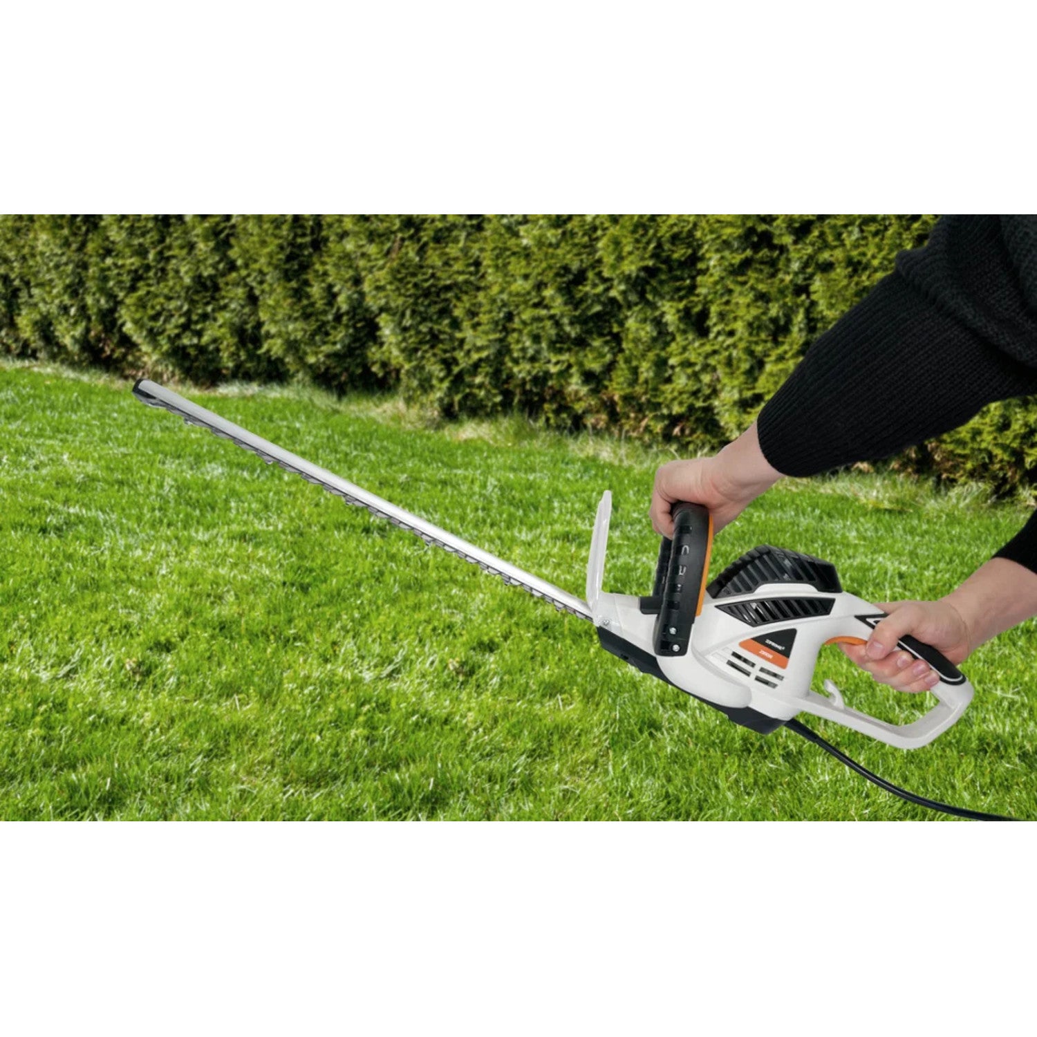 Tá mótar 2000 vata feistithe ar mhúnla GHT61, rud a fhágann go bhfuil na deoir ag déileáil le haon dúshlán. Fál dlúth cosúil le dufair? Gan fadhb! Soláthraíonn deoir bhranda PRIME3 gearradh beacht agus éifeachtach, agus a ndearadh éadrom (díreach 2.5 kg) déanann siad iad a láimhseáil go héasca.
