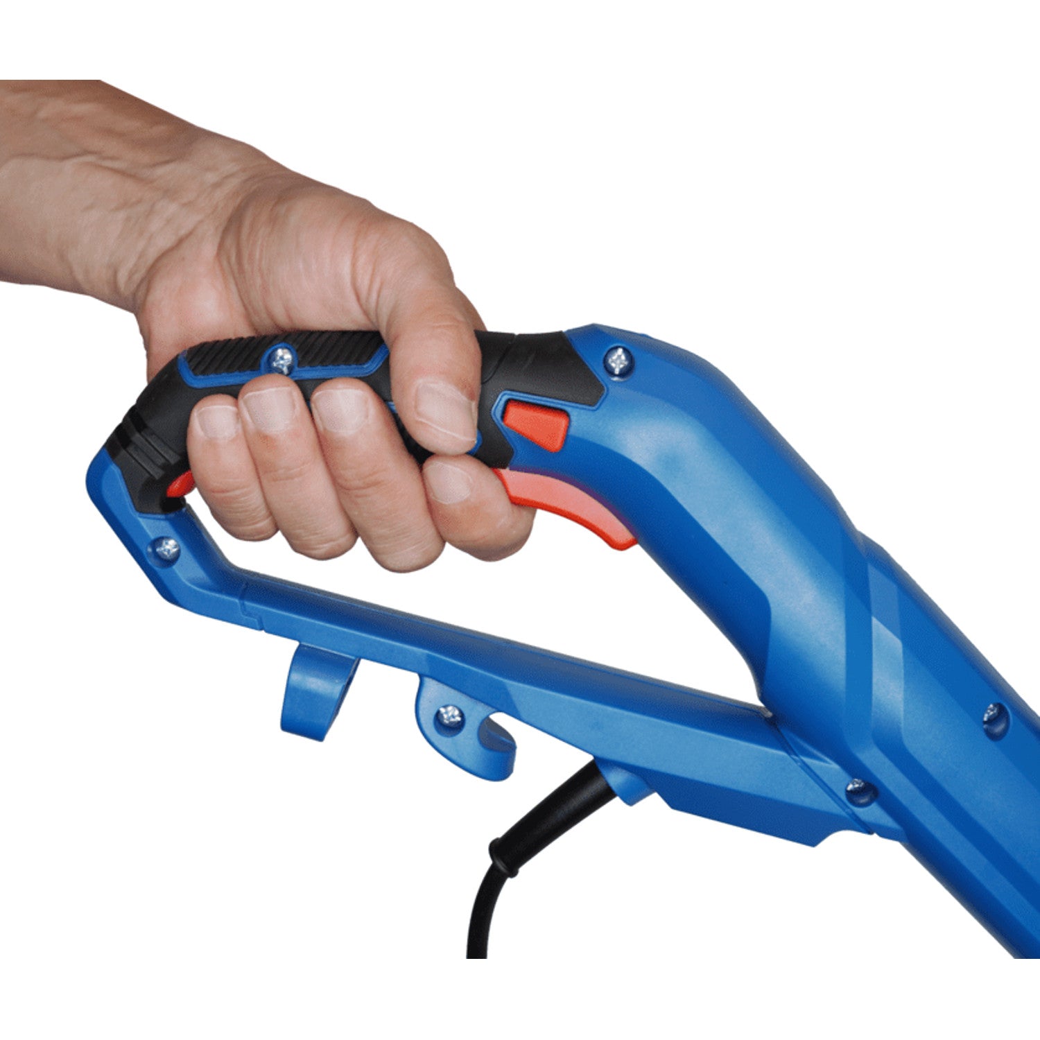 The device is equipped with a 450W electric motor that develops a no-load speed of up to 1,800 revolutions per minute. The 220-240V mains power supply ensures constant power throughout the work. The design, which weighs 2.4 kg and measures 116.5 x 26.5 x 20 cm, allows for comfortable operation without overburdening the user.