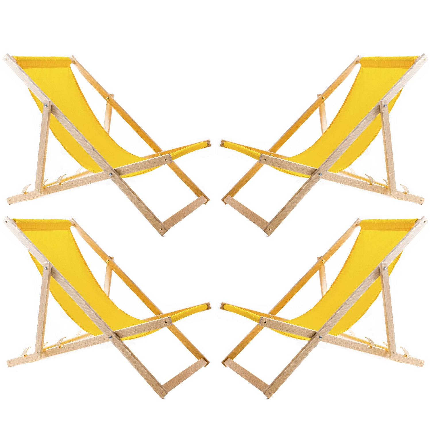 Set of four deckchairs, lounger chairs, yellow, Woodok, assembled