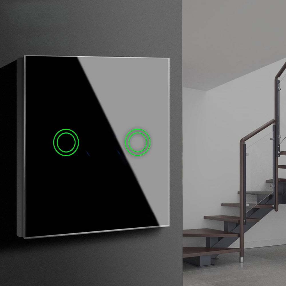 Touch Light Switch 2-Way 2-Gang Black Glass