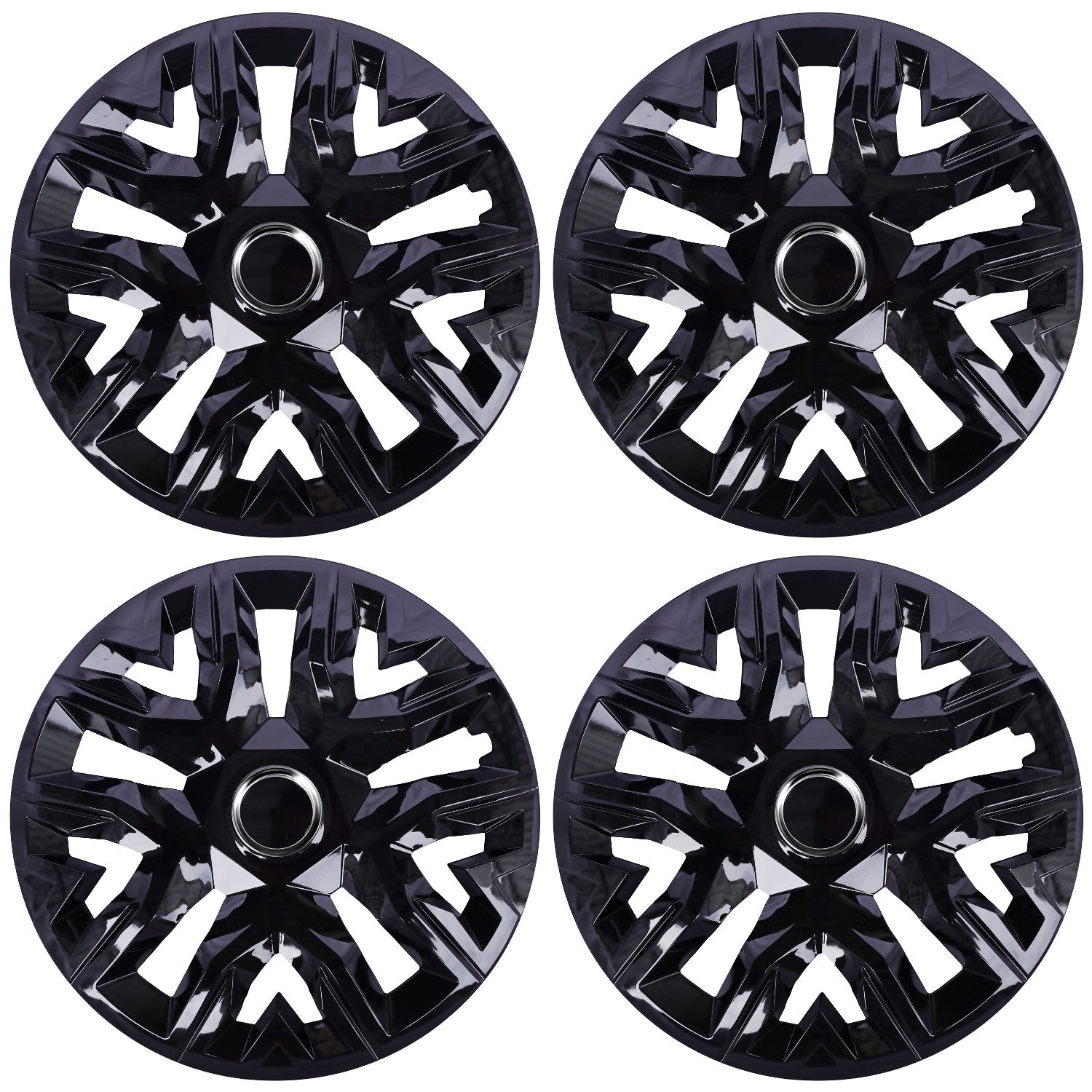A set of high-quality hubcaps made of impact- and weather-resistant plastic. The hubcaps fit steel rims of most car brands, including Toyota, Volkswagen, Ford, Honda, BMW, Mercedes, Audi, Hyundai, Nissan, Chevrolet, Kia, Renault, Peugeot, Skoda, Fiat, Opel, Mazda, Subaru, Volvo (they do not fit only convex rims).