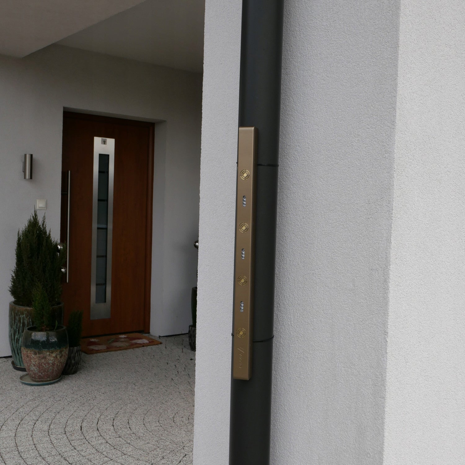 Thanks to the considerable length of the device, it was possible to build in as many as four piezoelectric speakers, three powerful strobe panels and a high-capacity lithium-ion battery. The whole is complemented by an airtight IP65-rated housing, which allows the repellent to be used both indoors and outdoors. The device is resistant to sunlight, rain, frost and wind.